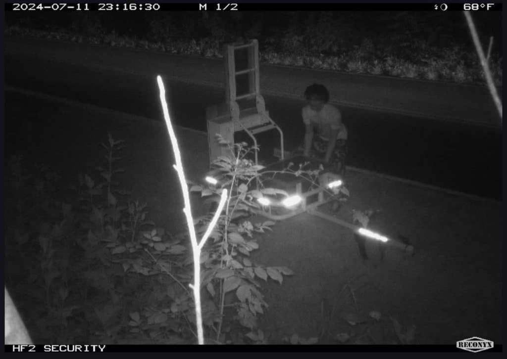 The sheriff’s department obtained surveillance footage capturing a male suspect during the act of vandalism.